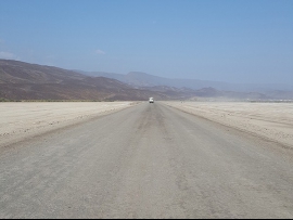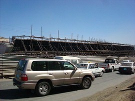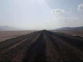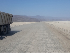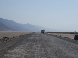Road improvement with hot mix asphalt of approximate 20.1 km. Work includes improvement near the border facilities by cement concrete pavement, development of the river-crossing structure (box culvert) of wadi, development of the stormwater drainage facilities (box culvert), development of ancillary facilities, such as signs, guard rails, road marking. etc, among others